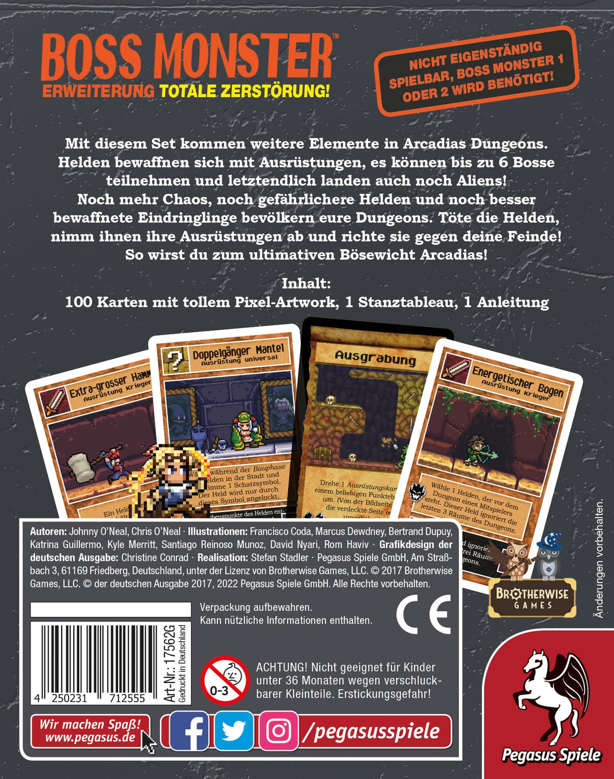Mit diesem Set kommen weitere Elemente in Arcadias Dungeons. Helden bewaffnen sich mit Ausrüstungen, es können bis zu 6 Bosse teilnehmen und letztendlich landen auch noch Aliens! Noch mehr Chaos, noch gefährlichere Helden und noch besser bewaffnete Eindringlinge bevölkern eure Dungeons. Töte die Helden, nimm ihnen ihre Ausrüstungen ab und richte sie gegen deine Feinde!